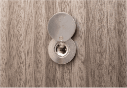 ドアスコープから室内の灯が漏れない蓋付タイプを採用しました。