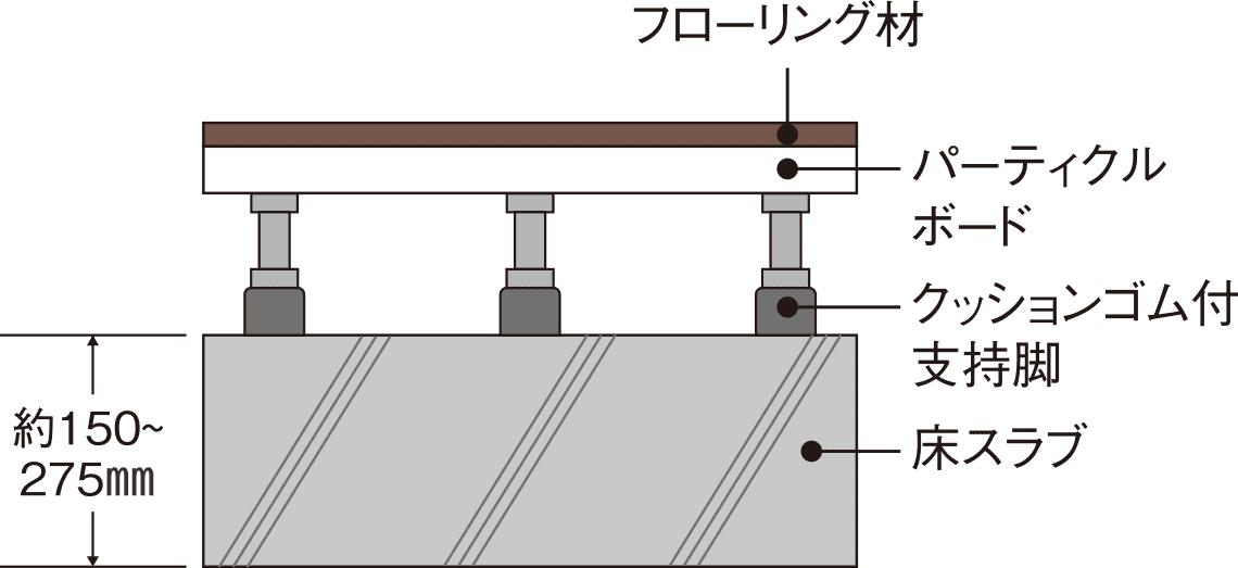 配線や配管などのメンテナンスや将来的なリフォームのしやすさに配慮した二重床・二重天井設計。