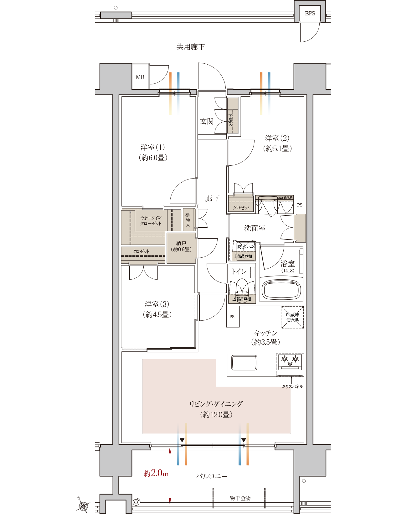 専有面積72.45㎡(約21.91坪)